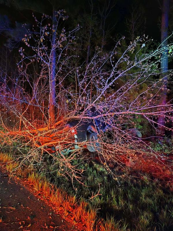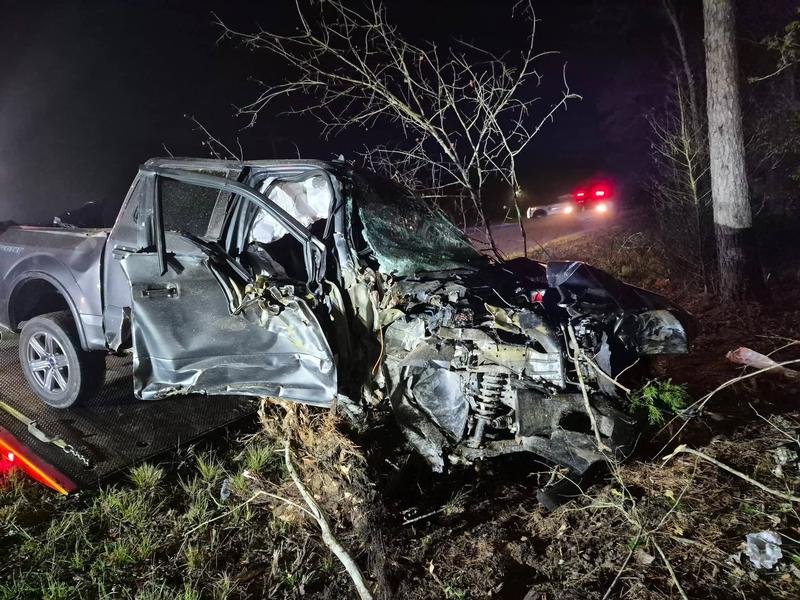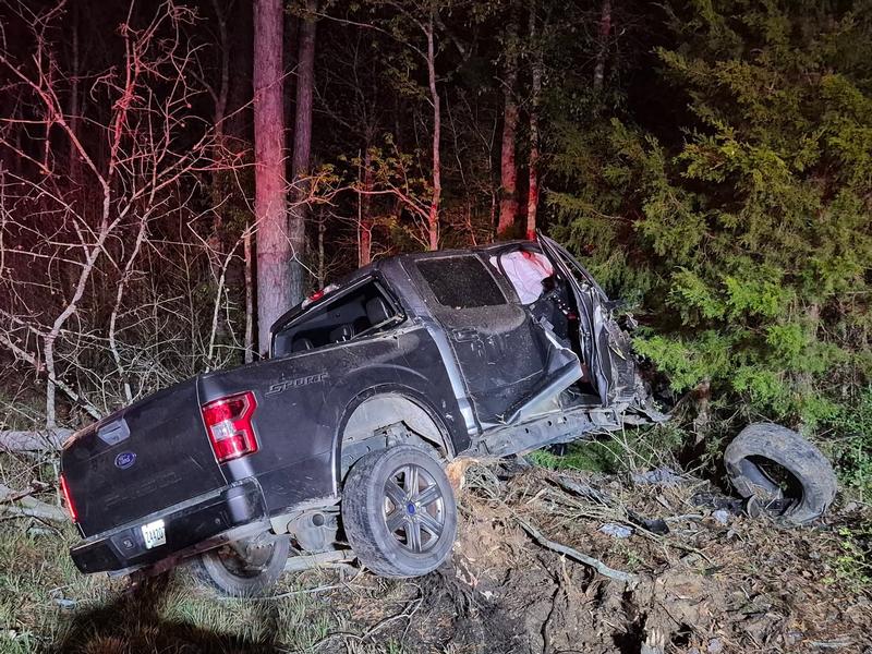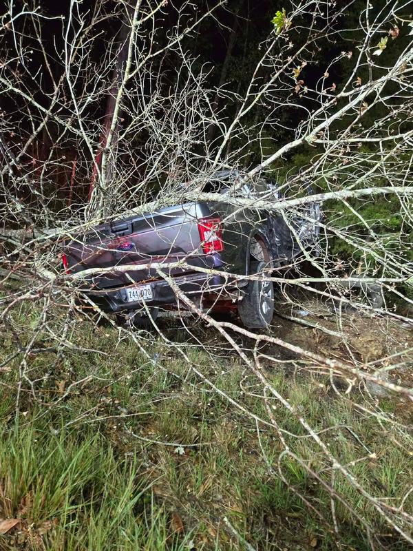 Early Saturday morning March 21, 2026 at 12:08am, Ward 6 was dispatched to a single vehicle crash on Hwy 12 at Rip Henagan rd. Command unit 901 arrived at 12:11 am and observed a pickup truck off the roadway with a ree across the bed.